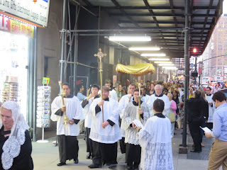 the Blessed Sacrament as the Procession marched on around Midtown Manhattan. The choir sang the Messa